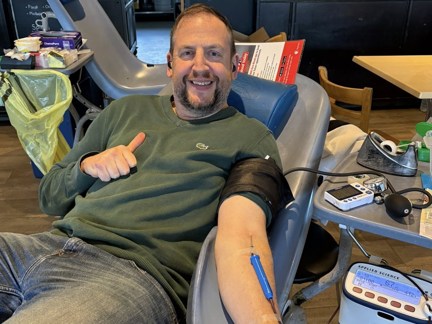 "Proud moment this week, I reached my bronze milestone as a blood donor at Marlow Rugby Union Football Club, hosted by and .