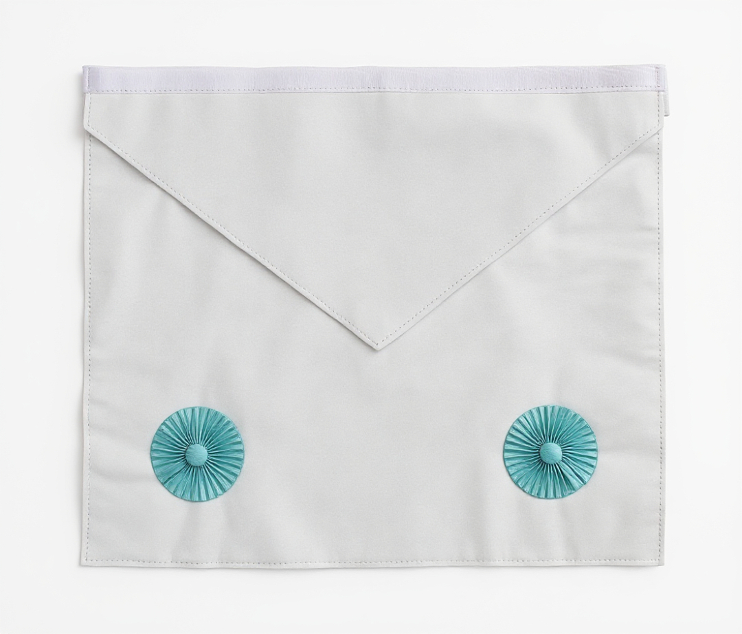 The apron of a Fellowcraft Mason marks an important stage in the Masonic journey, representing progress in knowledge, character, and responsibility. While the Entered Apprentice Apron reflects the innocence and humility of the initiate, the Fellowcraft Apron bears additional ornamentation, often with blue rosettes or trim, signifying advancement and the growing light of understanding. It embodies the Mason’s transition from the foundations of moral instruction toward the pursuit of greater wisdom and the liberal arts and sciences.