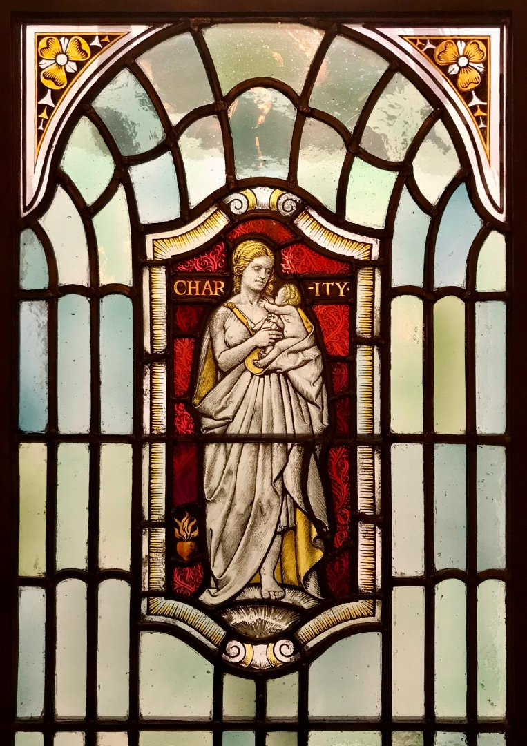 This window reminds us that the truest charity is not loud or public. It is the quiet decision to help when no one is watching, to extend a hand when it would be easier to turn away. Like the vine at her feet, such acts may begin small, but with care, they can grow into something that sustains and uplifts all around them.