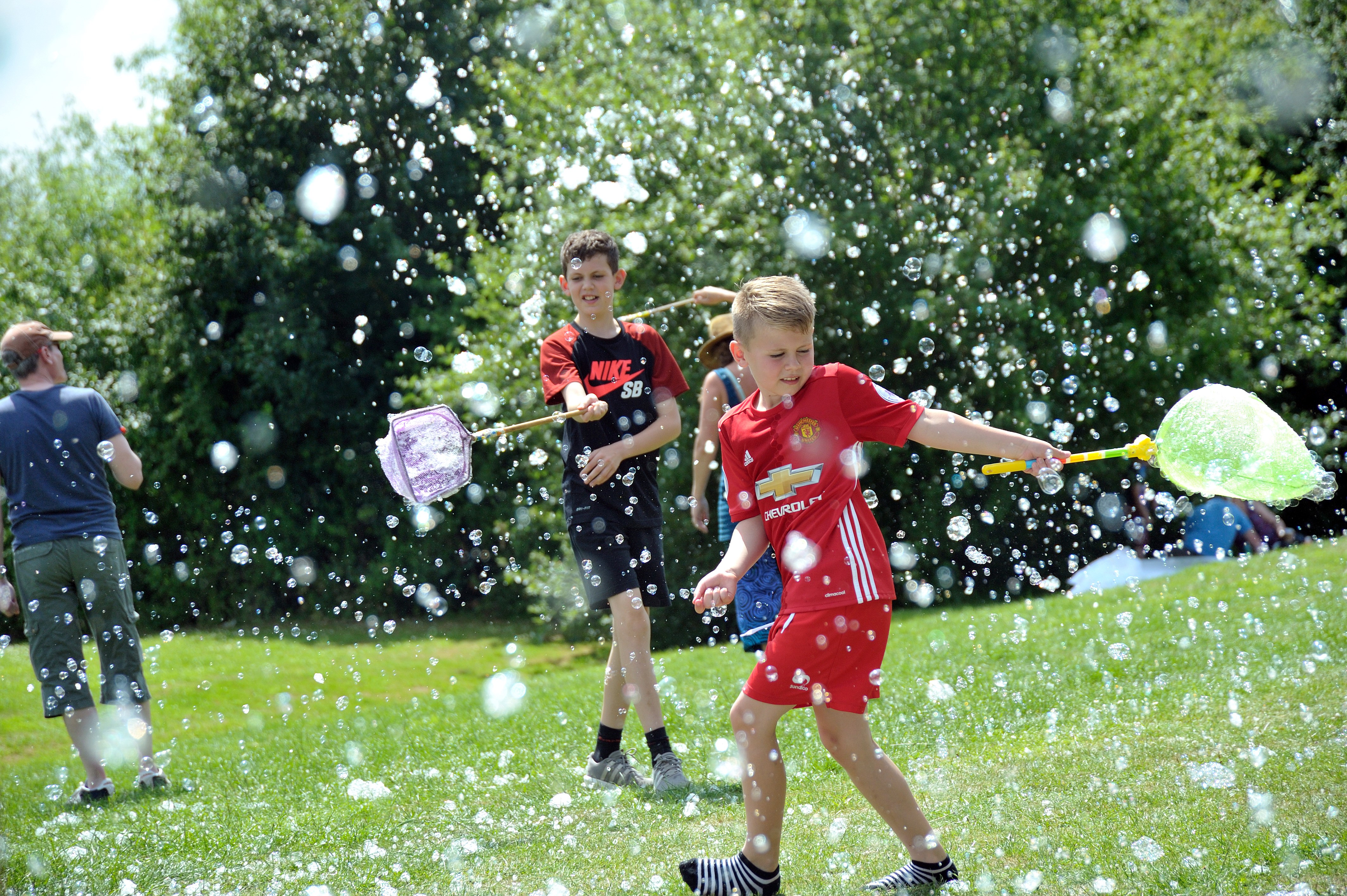 Pictures show youngsters trying to catch bubbles