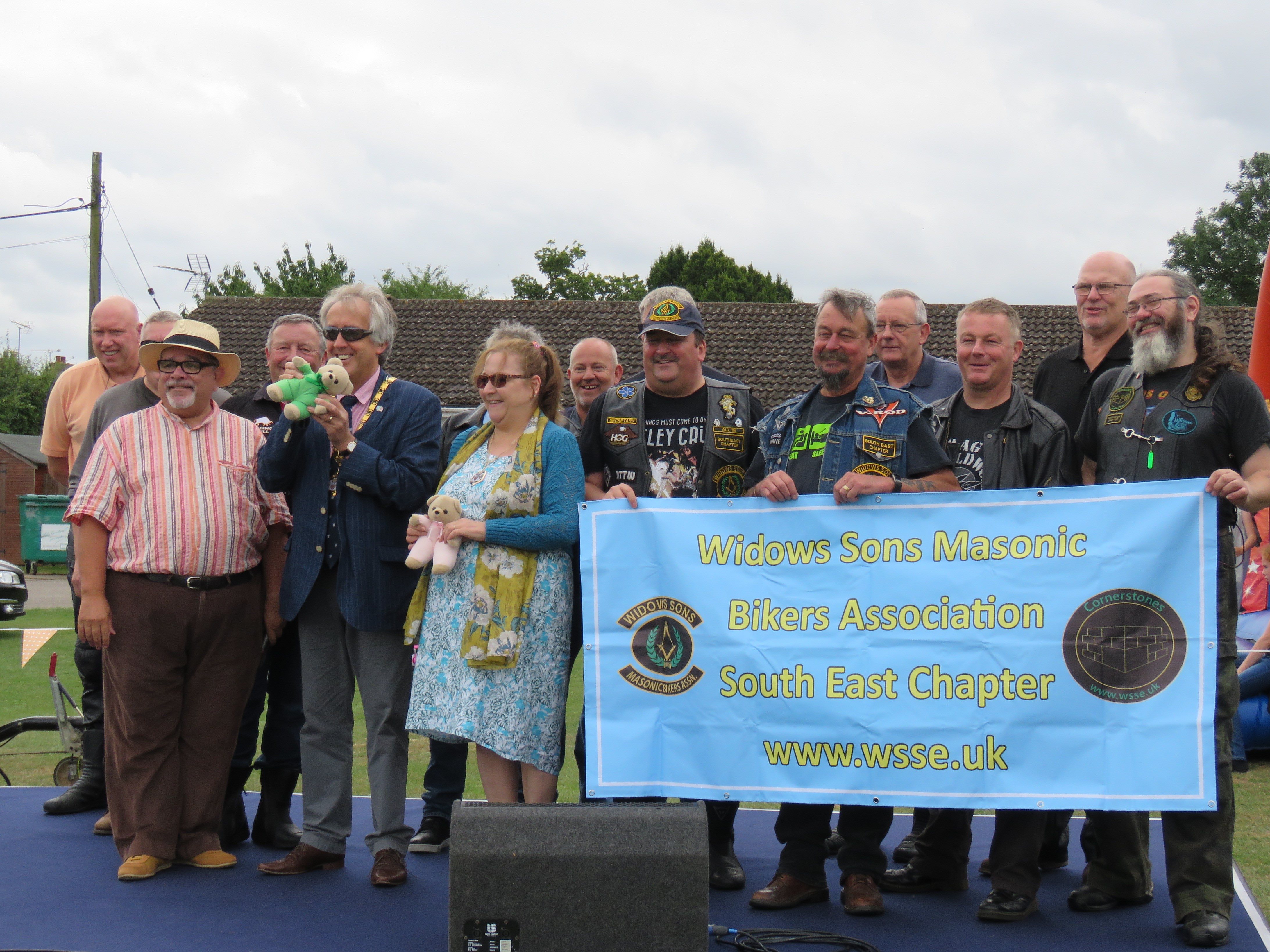 Members of the Buckinghamshire Motorcycle Lodge, 9926, and the South East Widow's Sons Bikers' Association, from as far away as Southampton, arrived in convoy to join in the fun and took up station with members of the newly formed Buckinghamshire Classic Car Lodge.