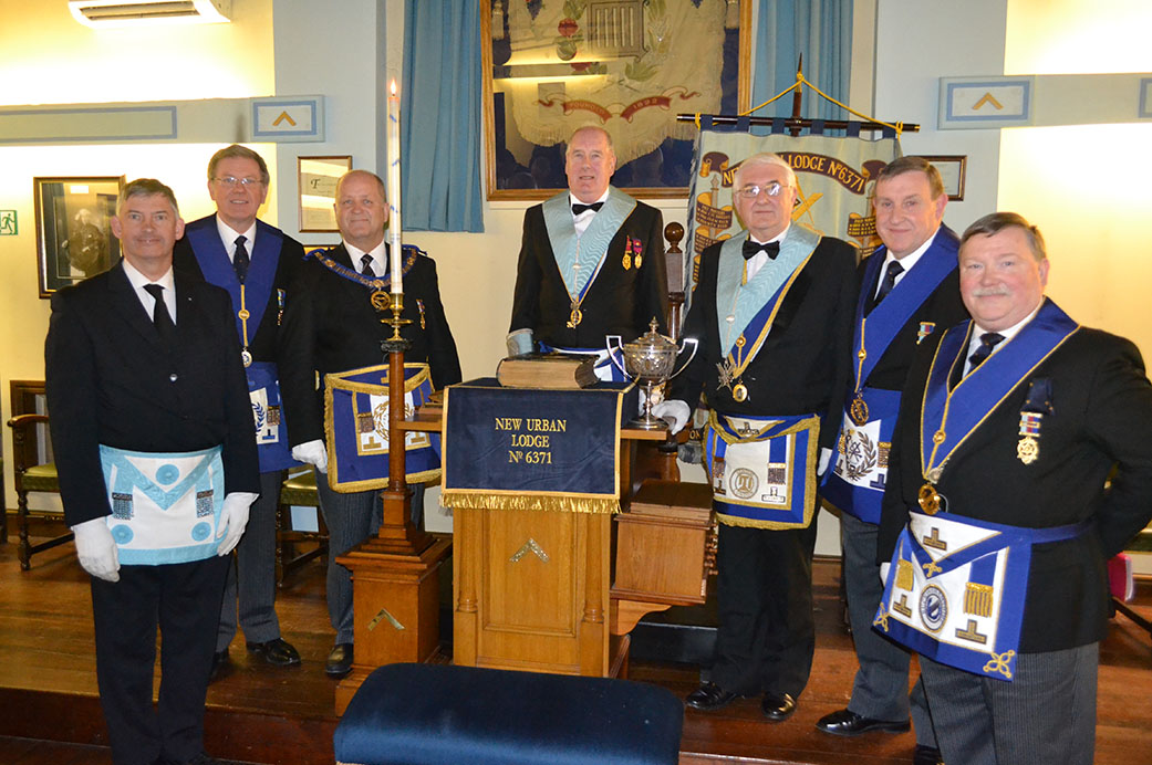 Assistant Provincial Grand Master John Clark and the Talking Heads team attended a meeting of New Urban Lodge on the 26th March 2015 when the Lodge's Loving Cup was delivered back to them after being missing for 31 years.