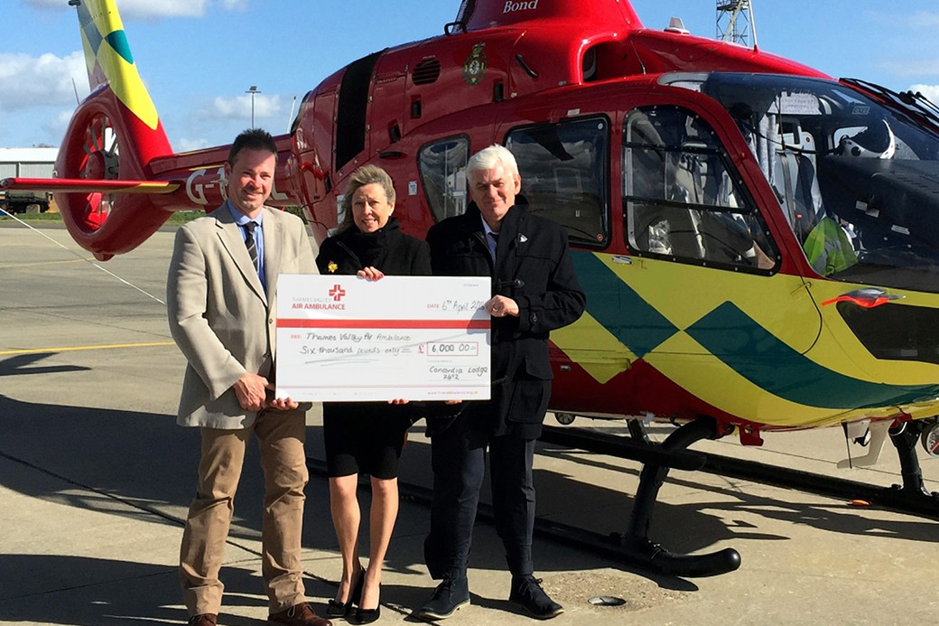 The Thames Valley Air Ambulance (TVAA) recently received cheques totalling £6,000 from the Master of Concordia Lodge 2492, Simon Shirley, and his partner Beverley Hewitt.